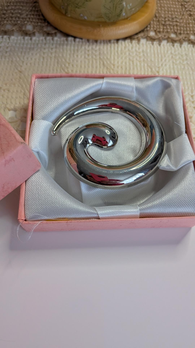 Spiral shape, silvery colour brooch.
