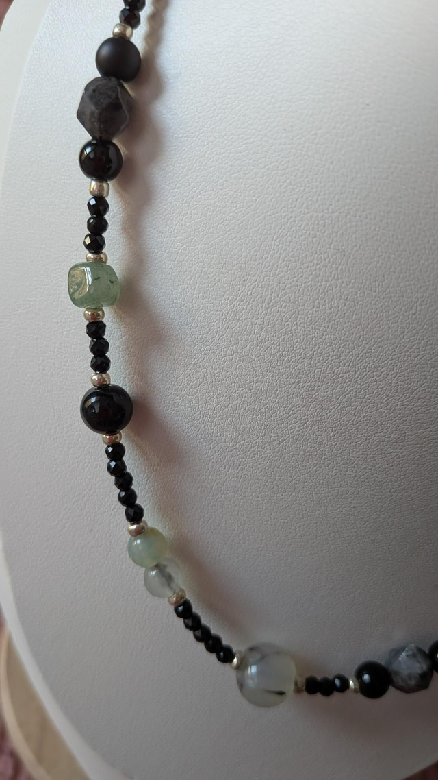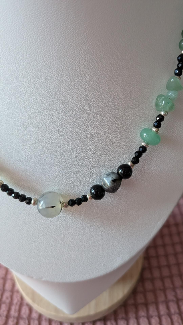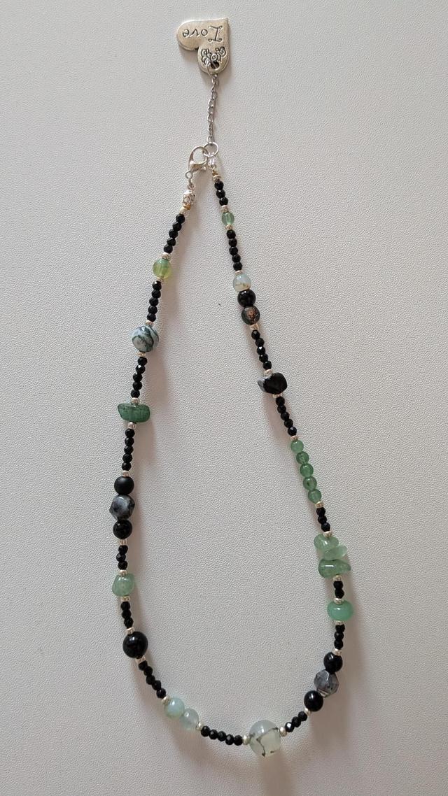 Materials: Genuine Black Tourmaline, faceted Black Spinel, Green Aventurine, and Natural Agate.