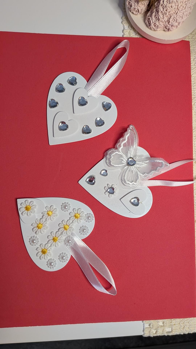 3 decorations, wooden heart shaped